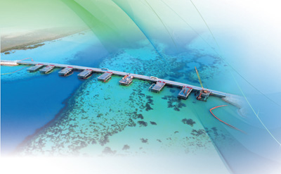 中國港灣工程有限責任公司承建、中交四航局負責實施的沙特阿拉伯紅海旅遊項目一景。中方團隊通過不斷加大環保投入力度,積極推動綠色施工。