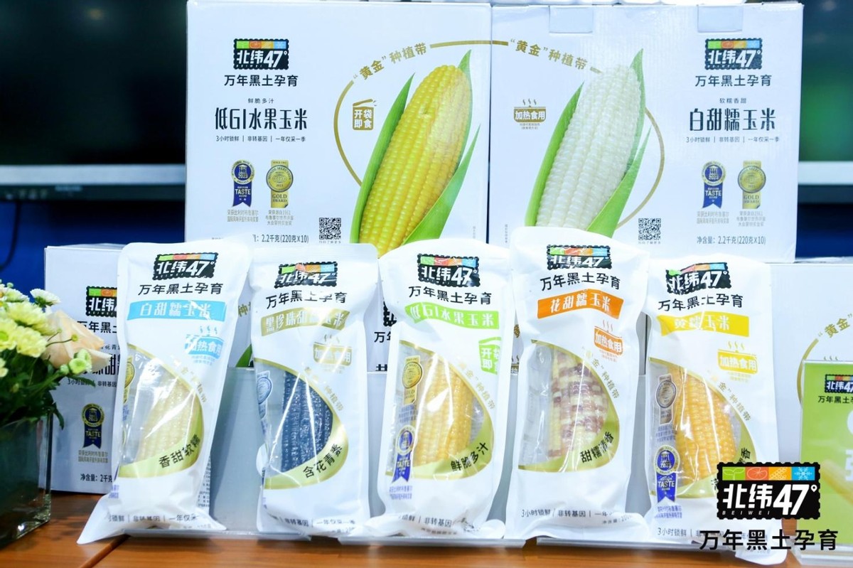 “每天一根北緯47°玉米,保持膳食營養均衡”,北緯47°玉米品類豐富,包含:有機水果玉米、低GI水果玉米、有機白甜糯玉米、黑珍珠甜糯玉米等多種優質產品,以及低GI水果玉米粒、芝士玉米酪等創新型、深加工玉米制品。北緯47°玉米產品非常多元,適合不同人羣。其鮮糯玉米、鮮甜玉米、東北香米等明星產品,適配都市消費者;具備低GI檢測證書的水果玉米系列,則更適合老人、小孩、減肥健身及控血糖人羣。銷售渠道方面,北緯47°採用線上+線下雙模式,並且出口多個國家。近期在山姆會員店推出的低GI水果玉米粒在消費市場上掀起了一陣綠色新主食風潮。