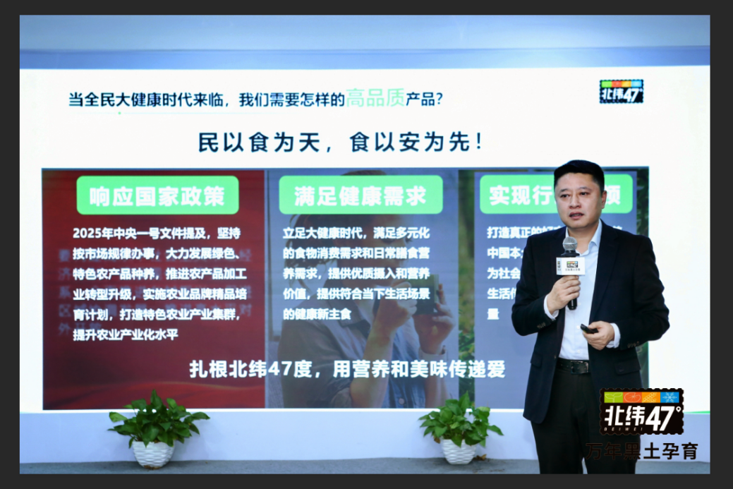 北緯47°副總裁郭忠良現場分享北緯47°堅守“高品質”之路,正是源自企業的初心和使命。企業自2021年成立以來,堅持升級高品質玉米生產全鏈條,嚴格把控產品研發、智慧種植、標準生產、產品溯源的每一個生產細節。“高品質”之於北緯47°不是一個宏觀的概念,而是所有北緯人的終極使命。這一體系既是品質保障的標準化規範,也是企業堅持“高品質”之路,向國家和行業交出的一份“答卷”。