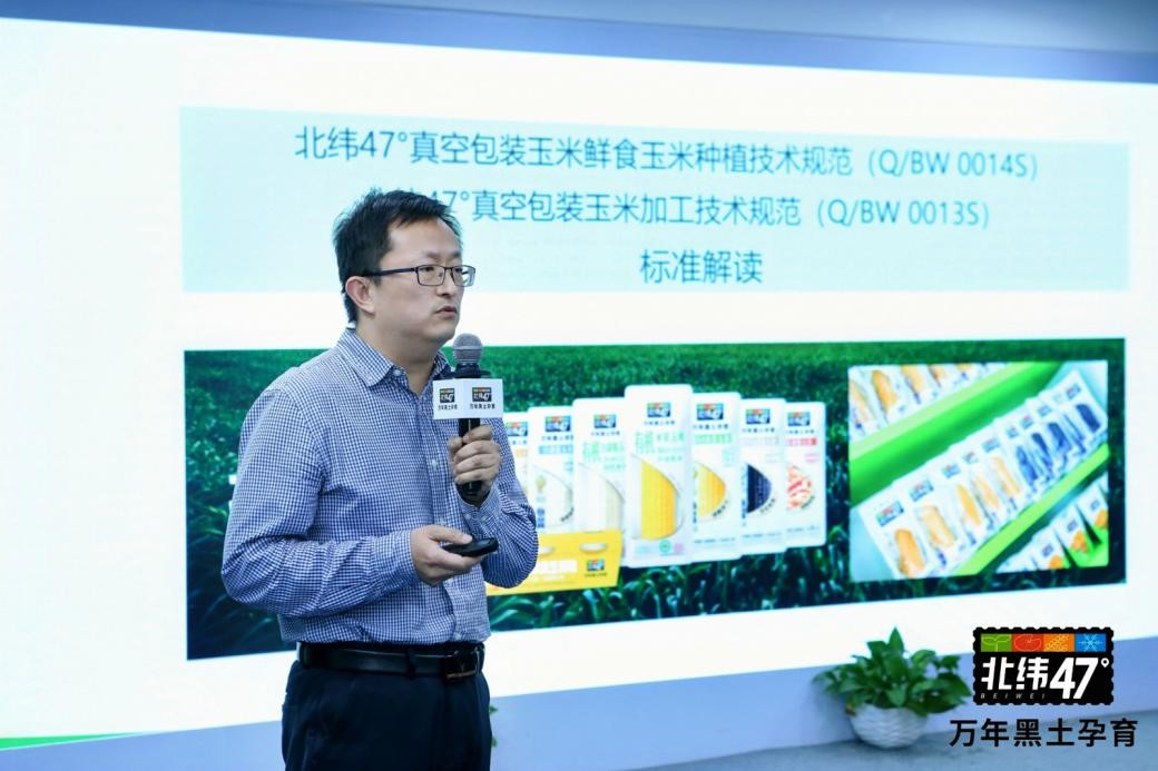 在發佈會上,針對《北緯47°真空包裝玉米 鮮食玉米種植技術規範》 《北緯47°真空包裝玉米 加工技術規範》兩項企業規範,中國標準化研究院農食所副所長李強,以權威專家視角,從品控的角度出發,對北緯47°高品質玉米的領“鮮”標準和生產技術規範,做了全面細緻的講解。