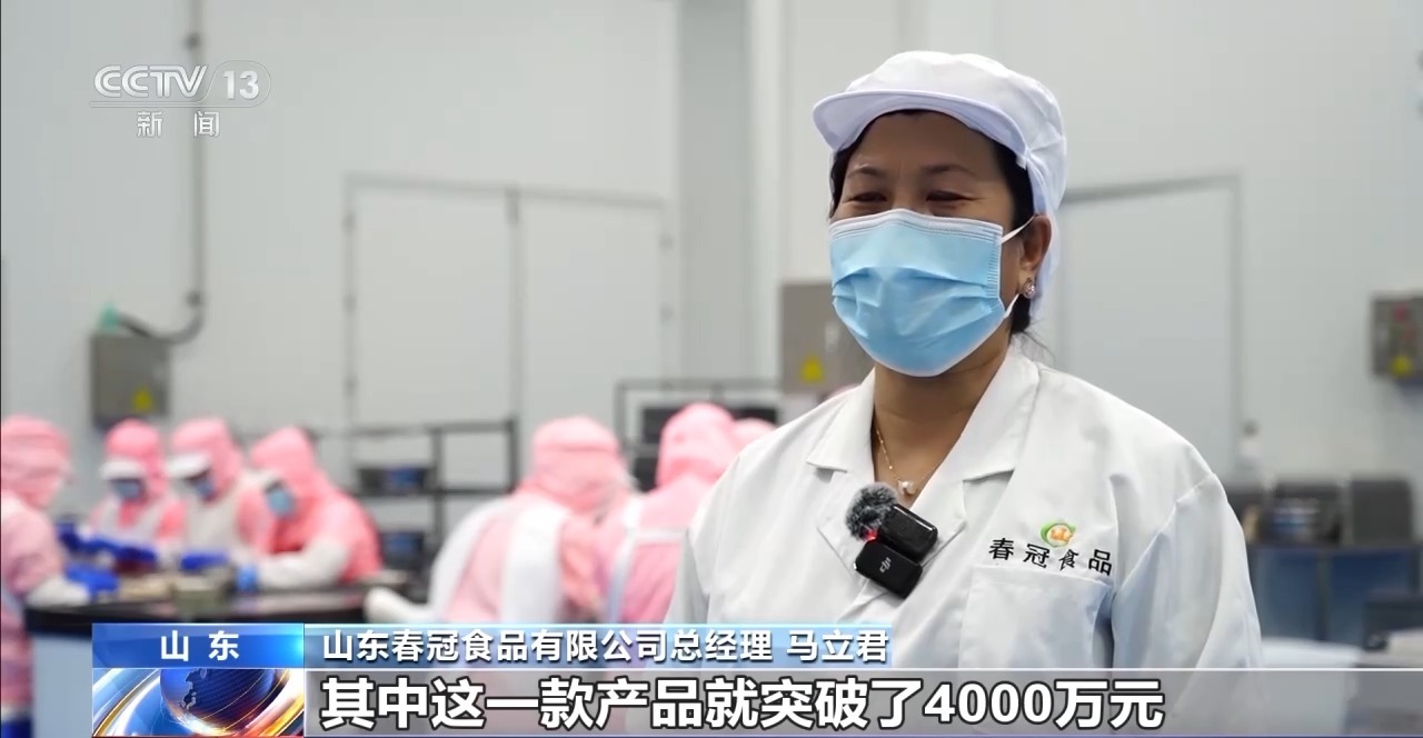 *山東春冠食品有限公司總經理 馬立君:*今年1月份到現在,我們的銷售總值已經超過了8000萬,其中這一款產品就突破了4000萬,同比增長32%。