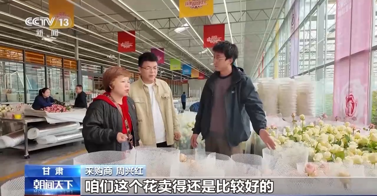 通過科學種植,劣勢變優勢,臨夏鮮花港的玫瑰全年常開不敗,還種植出一些獨有的品種,年產7000萬枝高品質鮮切花。為了對接客户,鮮花港還開起了直播間,農民們也變身為主播,就在記者採訪期間,不時有回頭客前來批量採購。