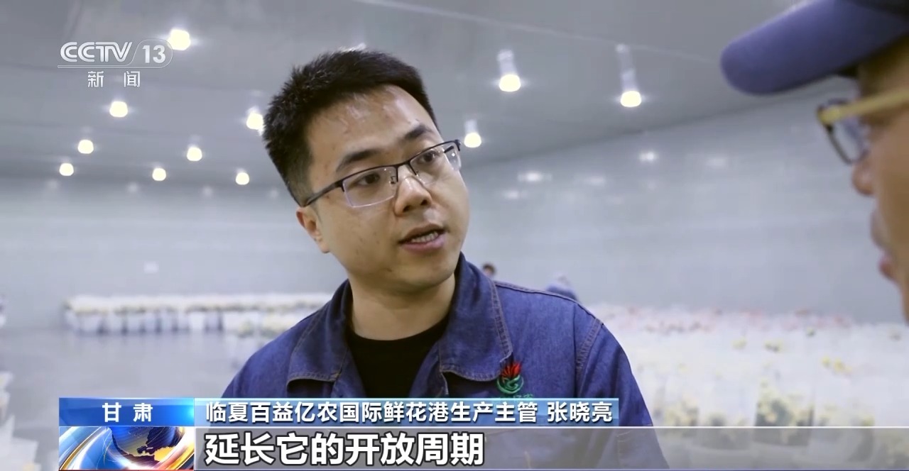 *甘肅臨夏百益億農國際鮮花港生產主管 張曉亮:*讓它進入一個半休眠狀態延長它的開放週期,保證了它運輸中可以達到保鮮的狀態。