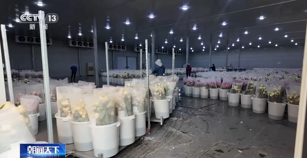 剪下來的玫瑰,被運往這間近2000平方米的冷庫,它們要在2攝氏度左右的真空中預冷4至6小時。