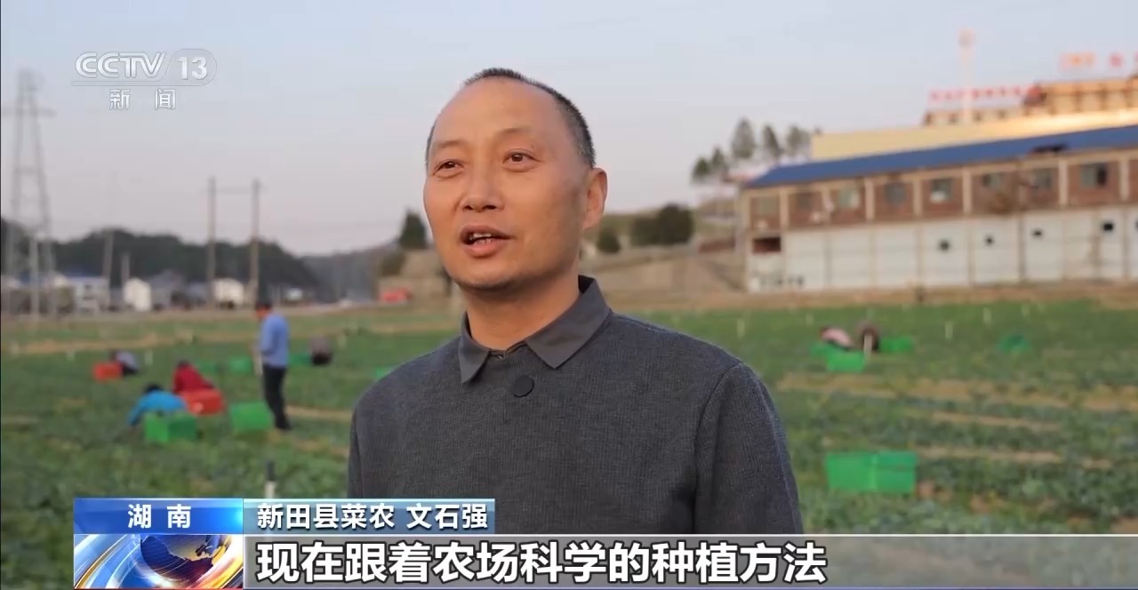 *湖南新田縣菜農 文石強:*以前我們是傳統的種植方法,現在不同了,現在跟着農場科學的種植方法,這個菜的品質上來了,(收入)比以前提高了兩三倍。