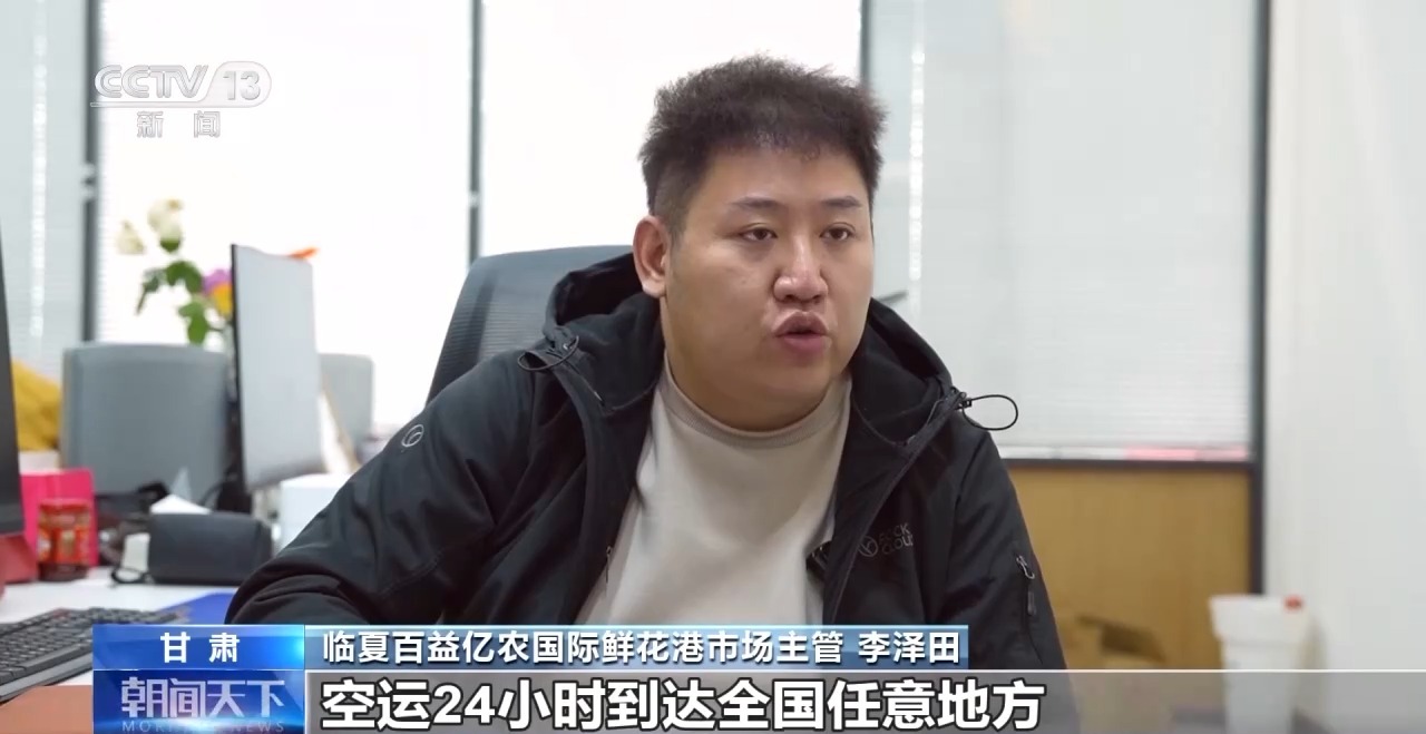 *甘肅臨夏百益億農國際鮮花港市場主管 李澤田:*通過冷鏈物流的方式,空運24小時到達全國任意地方,陸運48小時到達全國任意地方。