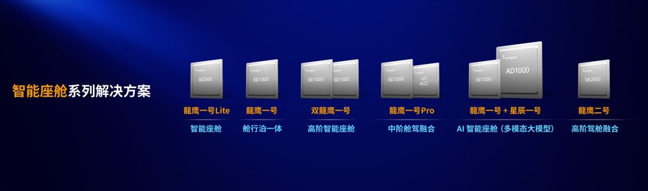 在“龍鷹一號”和“星辰一號”的基礎上,芯擎首次官宣“龍鷹一號Lite”、“龍鷹一號Pro”、“星辰一號Lite”以及AI加速芯片,全面升級的“龍鷹二號”芯片也將於明年正式推出。作為同時覆蓋智能座艙和智能駕駛關鍵SoC的芯片供應商,芯擎給出了12組不同的芯片方案,充分滿足主機廠多樣化的裝載需求。