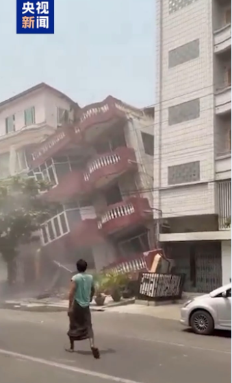 地震發生後,臨近的曼德勒地區一棟建築倒塌。距離震中較近的曼德勒的當地華人李豔彬描述了地震發生時的情景。