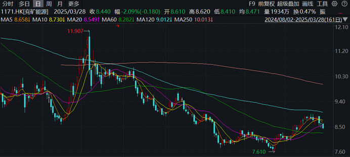 值得關注的是,兗礦能源宣佈擬派發末期股息每股0.54元,疊加此前2024年中已派發股息0.23元,全年每股分紅金額高達0.77元。參考當前兗礦能源H股股價僅為8.44港元,折算股息率將近10%,遠超市場平均水平。