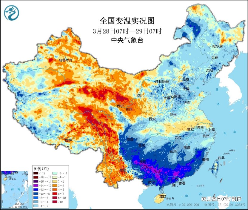 昨日,中東部大部地區氣温繼續下跌,其中西南地區東部、江南西部和南部、華南等地降温劇烈,大部地區降温8~12℃,貴州南部、廣西中部等地部分地區降幅達14~16℃。預計今天,較強冷空氣影響趨於結束,大風、降温天氣明顯減弱,中央氣象台已解除寒潮預警。明日起,中東部地區氣温將迅速回升,清明節前夕,華北、黃淮、江淮、江南等地大部地區最高氣温將回升至20℃以上,部分地區接近或超過25℃,公眾需關注氣温變化,及時調整穿着。