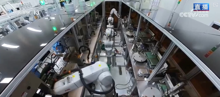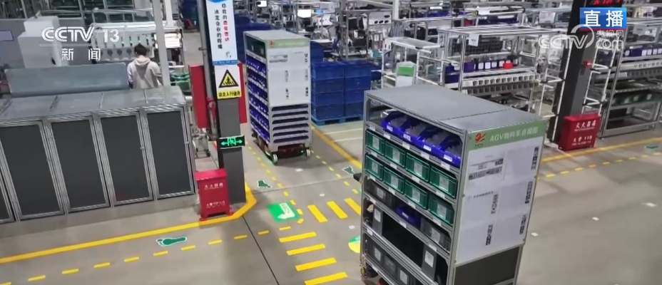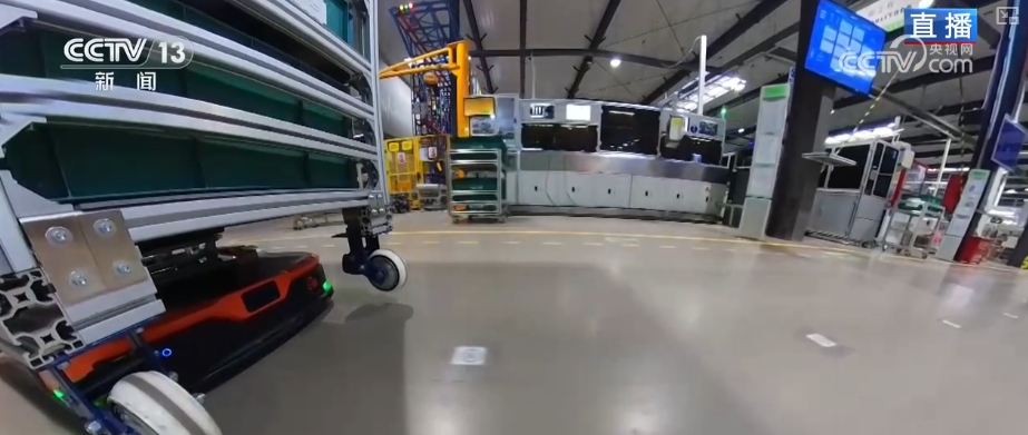 走進企業生產車間,最直觀的感受就是高度的自動化。這些忙碌的機器人,正在把物料運送到生產線的各個點位上。地面上這些二維碼是為機器人鋪設的“數字軌道”,能夠引導機器人有條不紊地精準配送。在整個車間,從原料的上料、流轉到成品的加工、入庫,自動化率達到了90%以上。儘管2025年一季度企業的訂單增長了40%,各條生產線24小時不停工生產,也能確保訂單的如期交付。