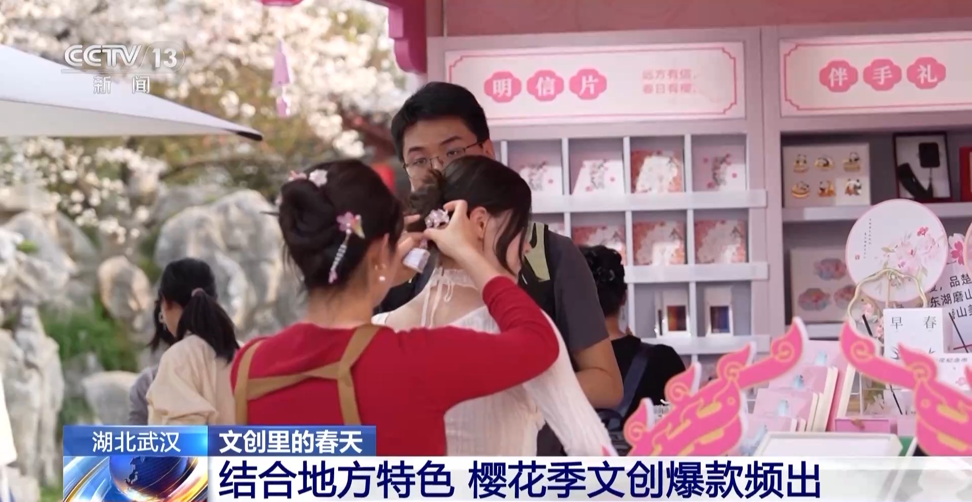 而在武漢東湖櫻花園,多款融入了“春日”“櫻花”等季節特色元素的文創產品同樣銷售火爆。