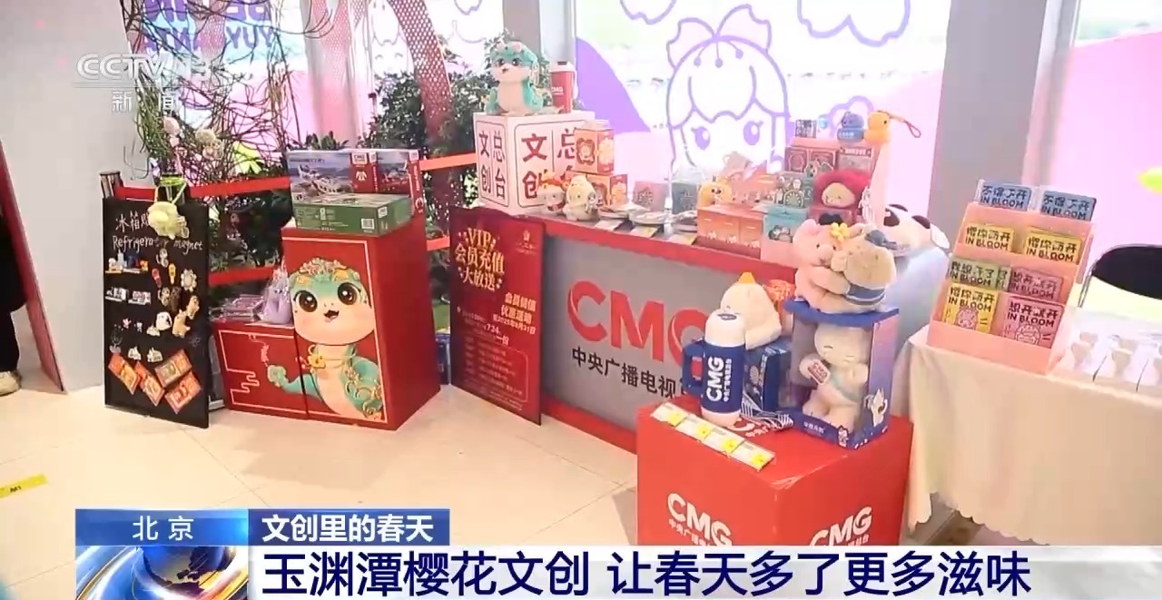 *玉淵潭公園文創經營中心主任 郭欣:*小櫻的IP形象是從2018年面世的,我們把它從平面形象到立體形象,再到今年毛茸茸的形象,不斷地升級。周邊產品也在做不同的衍生。除了常規的冰箱貼、伴手禮,遊客還可以選擇包、帽子、襪子這種生活必需品。