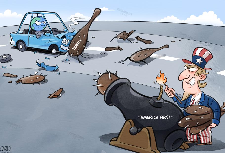 貿易保護砸自己的腳。(作者:中國日報 羅傑)