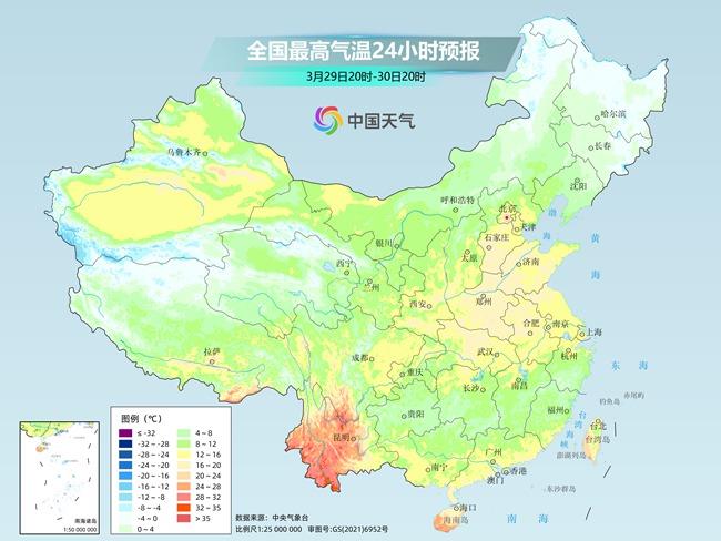 △ 據29日08時城市預報製圖,具體氣温數值請關注臨近預報。