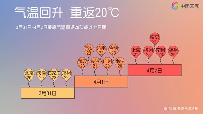下週,氣温將在波動中逐漸回升。到清明節前後,華北平原多地最高氣温接近或超過25℃,南方大部氣温也將重返20℃,部分地區超25℃。像長沙,今天氣温不足10℃,到4月3日最高氣温可達25℃左右,累計升温幅度接近20℃。