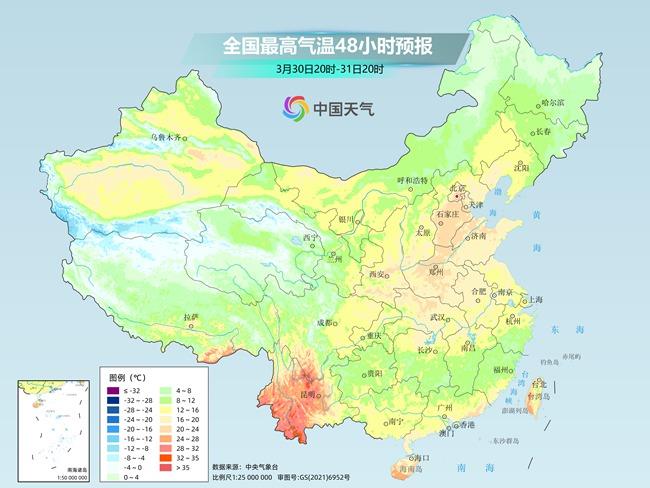 南方氣温回升則有些滯後,*預計4月1日降水明顯減少後,江南一帶的氣温才會回升,*並逐漸轉為接近常年或偏高水平。