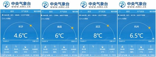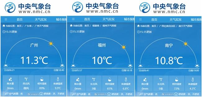 15時左右氣温實況看,除了雲南和海南島,長江以南大部分地區氣温都跌至10℃出頭,甚至只有個位數。長沙4.6℃、杭州6.5℃、貴陽3.4℃、南寧10.8℃、廣州11.3℃……