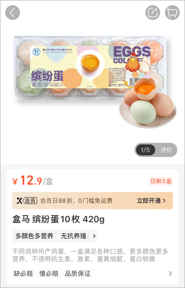 近日,盒馬鮮生新推出的“繽紛蛋”引發了很多人的關注。這款產品包含褐色、綠色、深粉、淺粉4種顏色的雞蛋,並稱“多顏色多營養”,月銷量超過3200單。