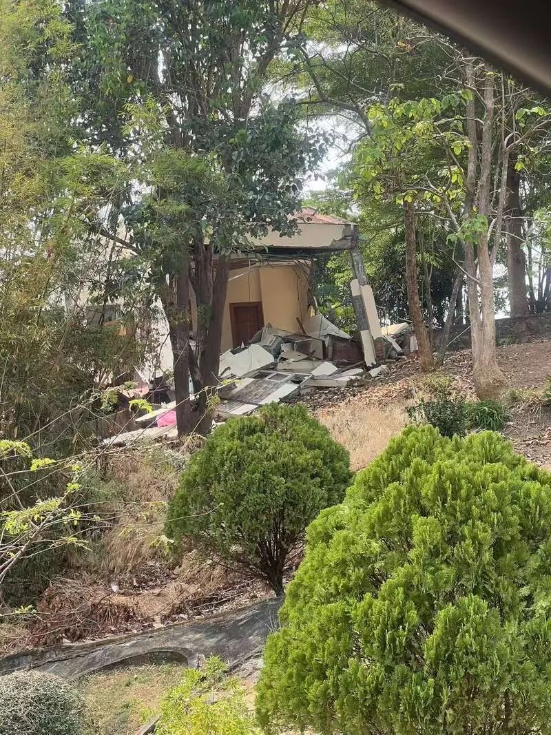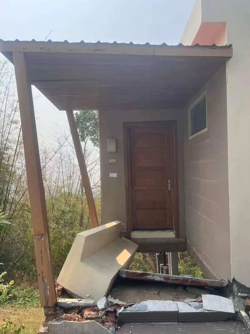 3月28日,緬甸首都內比都,強震發生後,劉翀的住處入口被震毀。劉翀/攝
