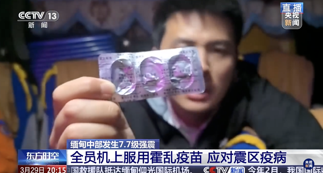 ④為應對震區疫情,救援隊全員已在飛機上服用霍亂疫苗。