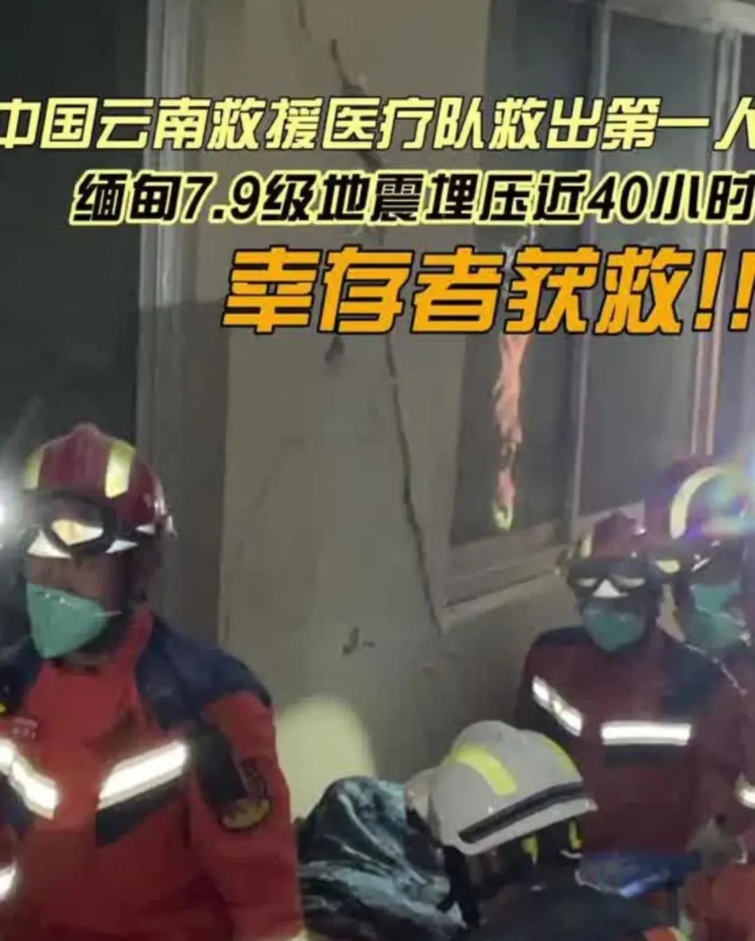 據云南廣播電視台消息,當地時間3月29日晚,在緬甸內比都Ottara thiri 醫院開展救援的中國雲南救援醫療隊,通過生命探測儀器發現了坍塌樓層下埋壓的一名倖存者。