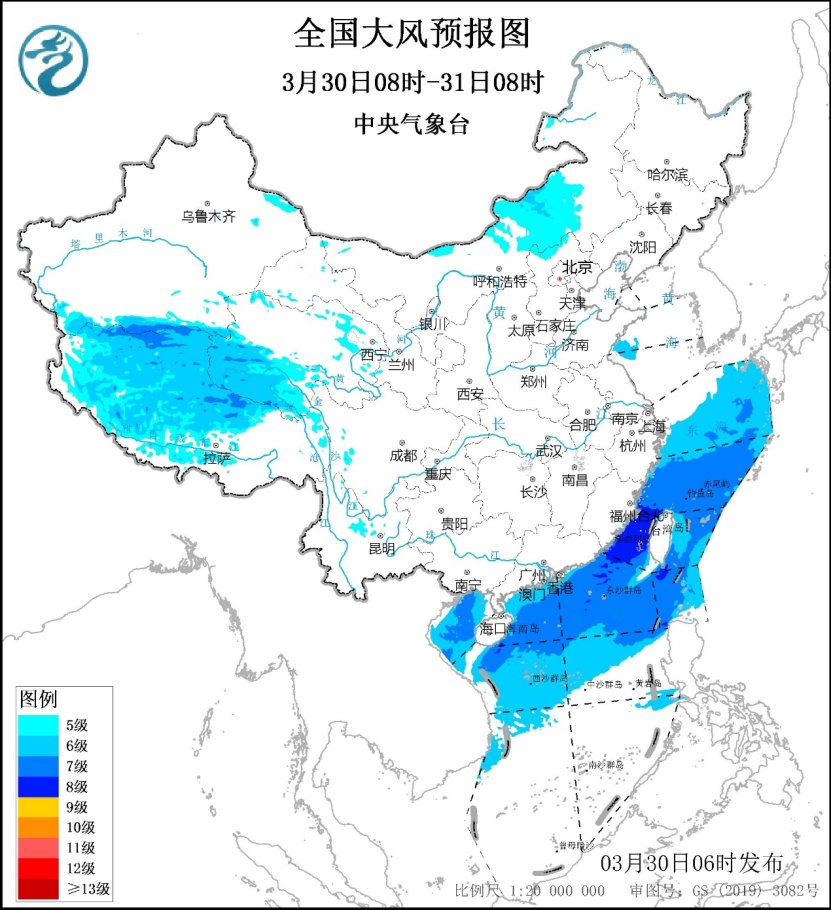另外,由於大風影響範圍減小,強度減弱,大風藍色預警已解除。但今日,內蒙古中部、華北北部、青海西南部、西藏中北部等地仍有5~6級風,陣風7~8級。公眾外出時需遠離臨時搭建物、廣告牌等,謹防高空墜物,臨近清明節氣,公眾還需文明祭祀,注意用火安全。