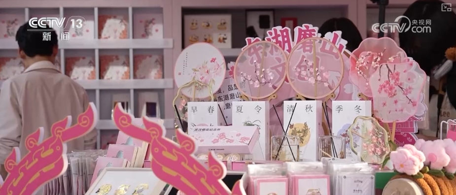 而在武漢東湖櫻花園,多款融入了“春日”“櫻花”等季節特色元素的文創產品同樣銷售火爆。