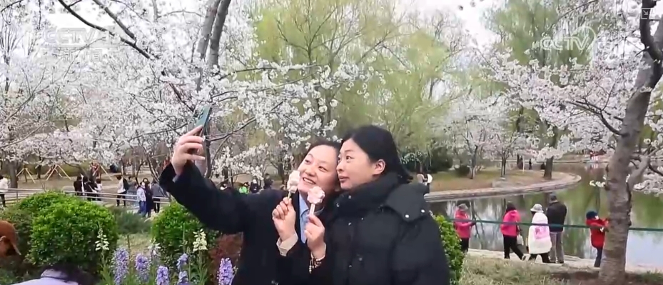 作為北京“賞花季”的熱門地點,玉淵潭公園的櫻花已經逐步進入最佳觀賞期,特別的櫻花文創給遊客帶來更多“春天的滋味”。