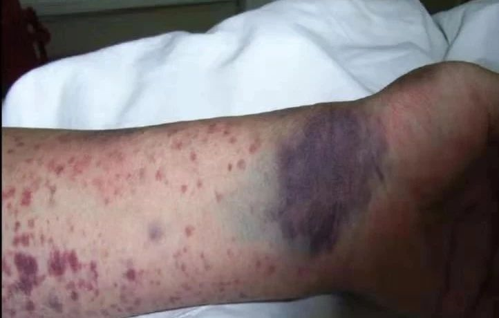 之後出現嘔吐、皮膚大面積瘀點/瘀斑
