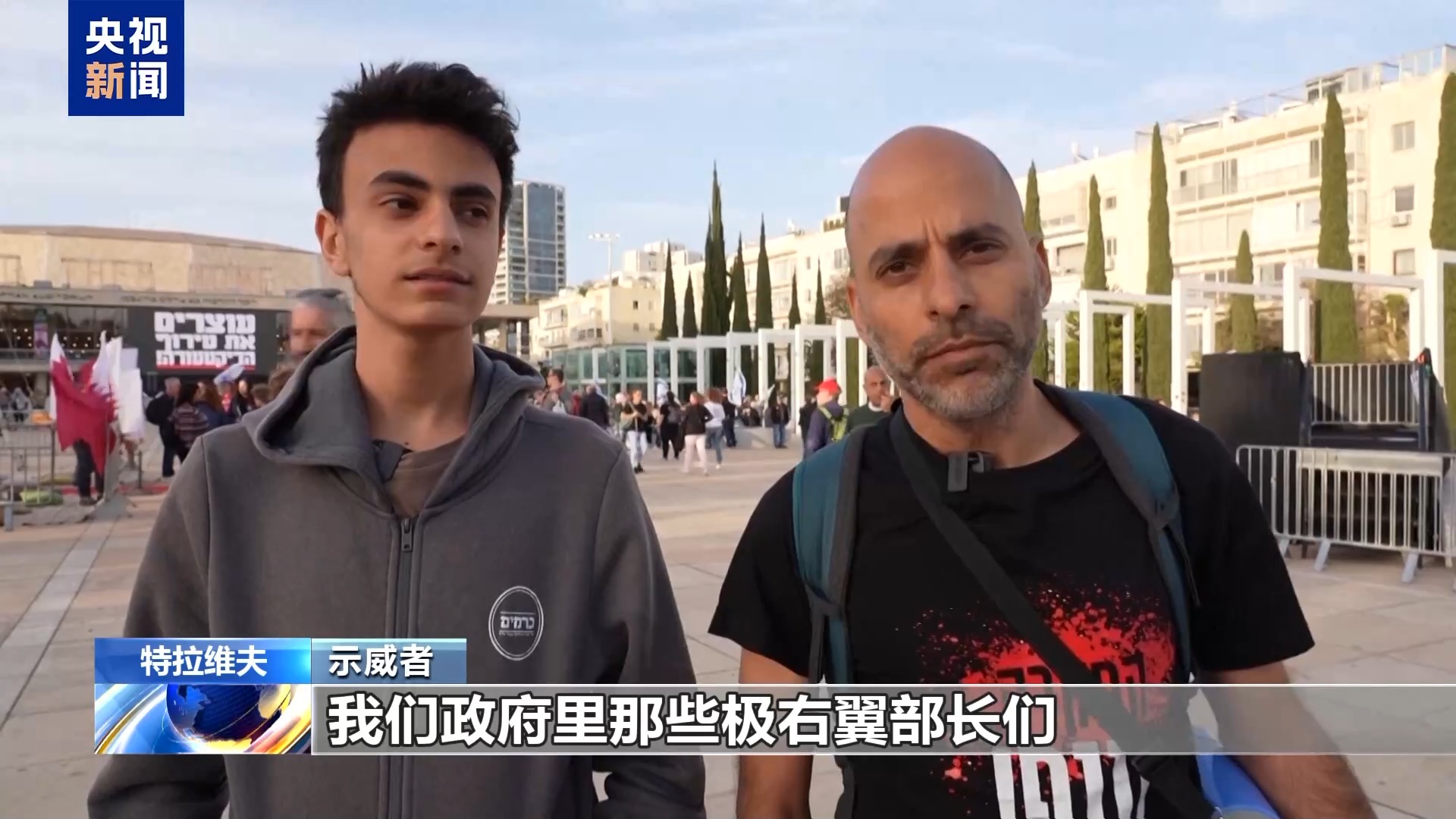 *示威者:*我們希望被扣押人員現在就能回來,希望舉行大選,我們受夠了以色列總理內塔尼亞胡。這個政府應該立刻下台。