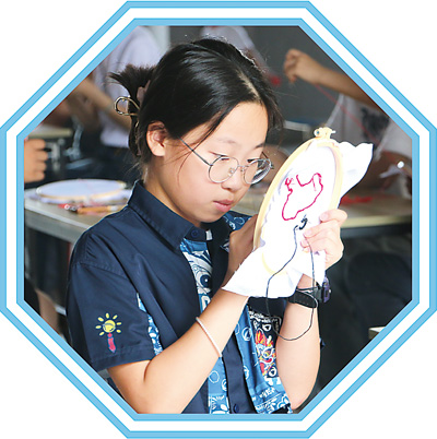 青少年在貴州遵義1964文化創意產業園內體驗非遺刺繡。
