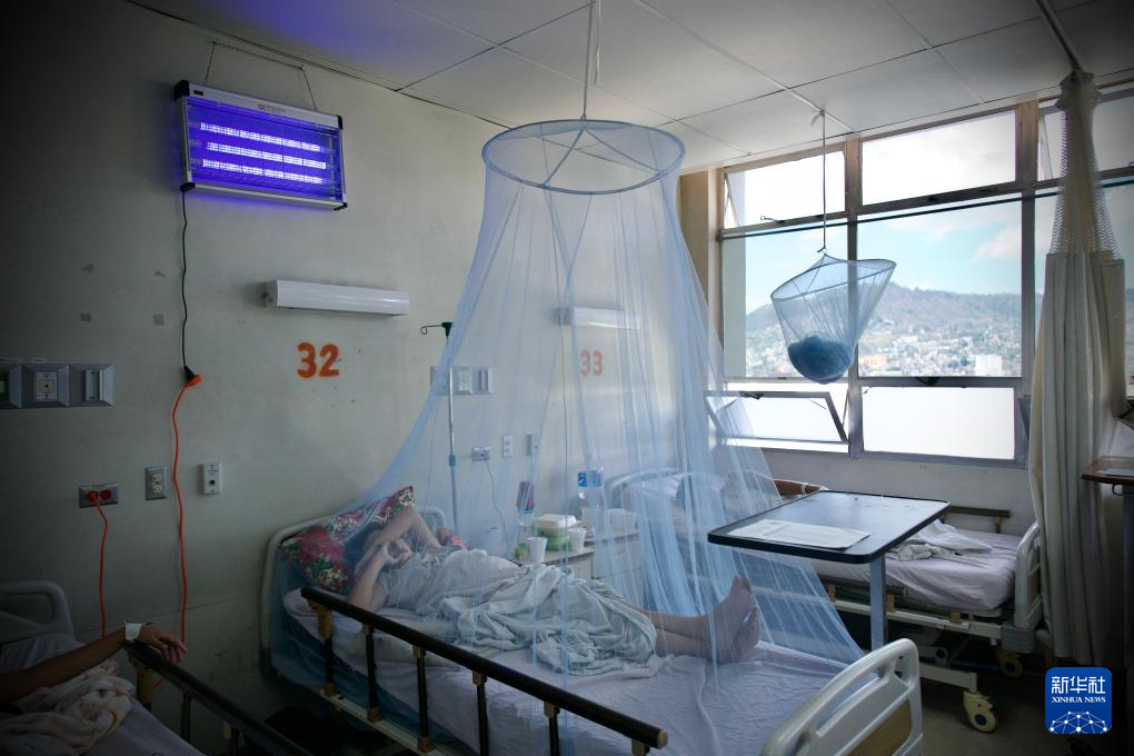 “有了這個燈,我就安心了,小傢伙晚上睡得很好。”在洪都拉斯首都特古西加爾巴的埃斯庫埃拉醫院,33歲的產婦伊麗絲微笑着看着懷裏剛出生9天的孩子。病房裏,6張牀鋪上都掛着蚊帳,牆上的滅蚊燈散發着淡紫色的柔光。