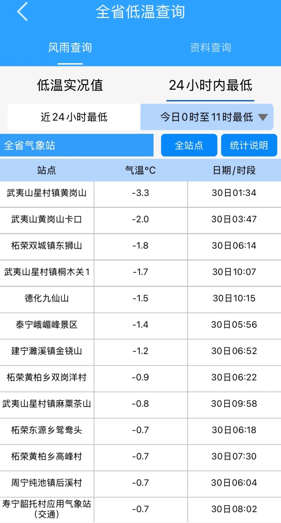 30日—31日全省氣温繼續下降**最低氣温過程降幅6℃~10℃
