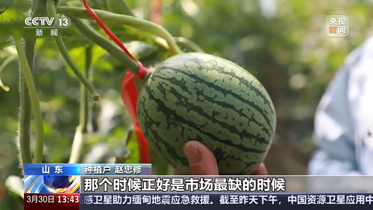 *種植户 趙忠修:*4月初成熟時候正好是市場最缺的時候,一斤西瓜多賣四五塊錢。