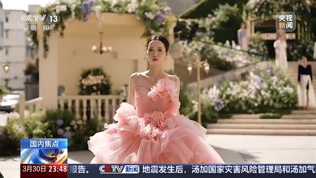 上週末,杭州大廈商場上演時裝大秀,14個品牌的首發時裝和婚紗齊聚,吸引了眾多消費者駐足。
