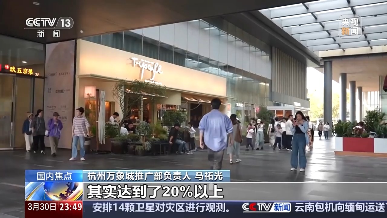 杭州萬象城推广部負責人 馬祏光: 首店經濟作為我們重要的一個經營手段之一,可能每年我們都會保持着大概40%~50%的整個場內品牌的更新和迭代的頻率。我們的客流的同比增長其實達到了20%以上。