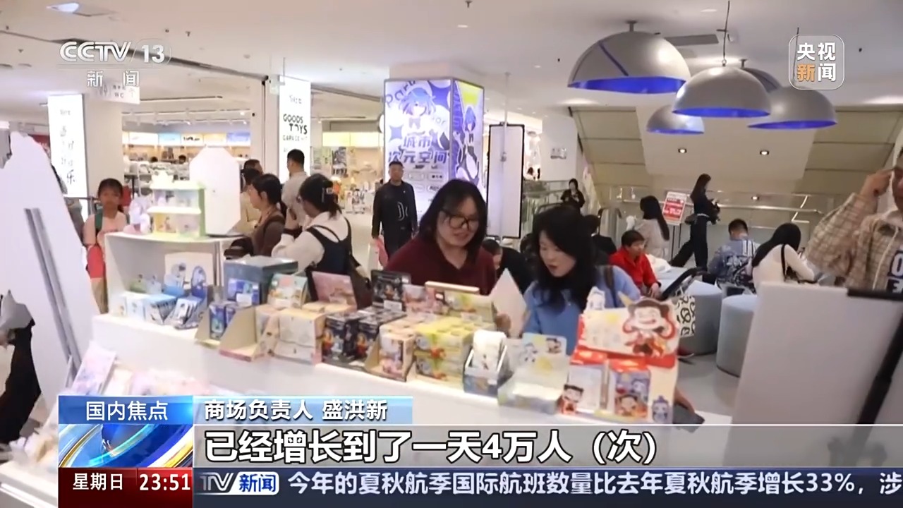 商場負責人 盛洪新: 我們把這些東西傳統百貨服飾去掉了,改為現在的比較熱門的二次元產品。就是年輕的客流已經增長了65%以上了。我們有一天的客流,已經增長到了一天4萬人,經營面積只有18000平方,接近到4萬人。