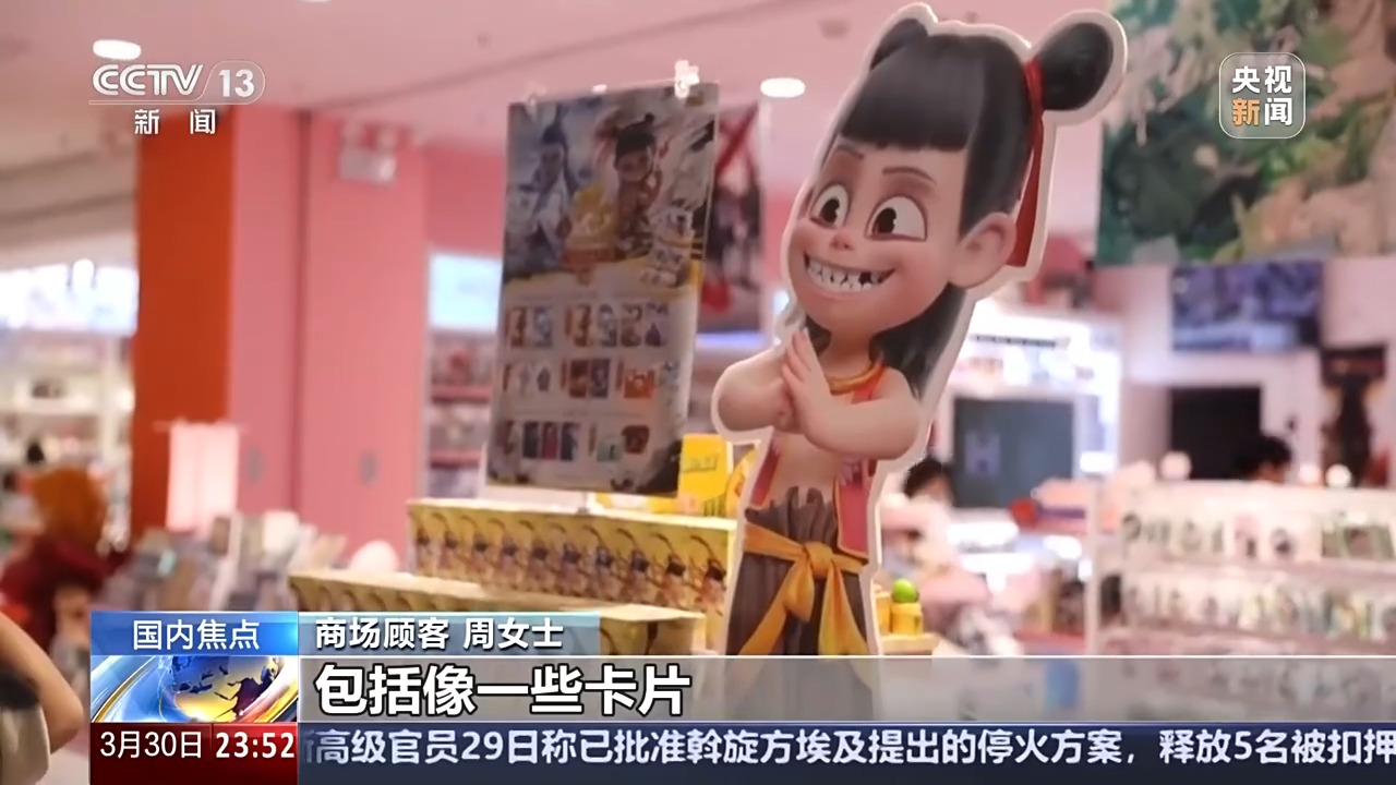 商場顧客 周女士: 我們同事有“90後”,還有“00後”,然後聽他們説的,説這邊賣一些徽章啊、胸章啊,包括像一些卡片啊,這些不都是“穀子”嘛,我們就過來看看。