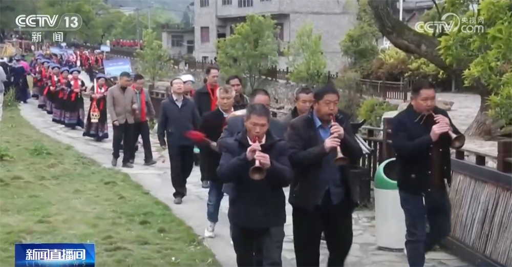 農曆三月三也是貴州布依族羣眾的傳統節日,在黔西南的陂鼐古寨,當地村民和遊客一起品嚐美食、欣賞非遺展演。
