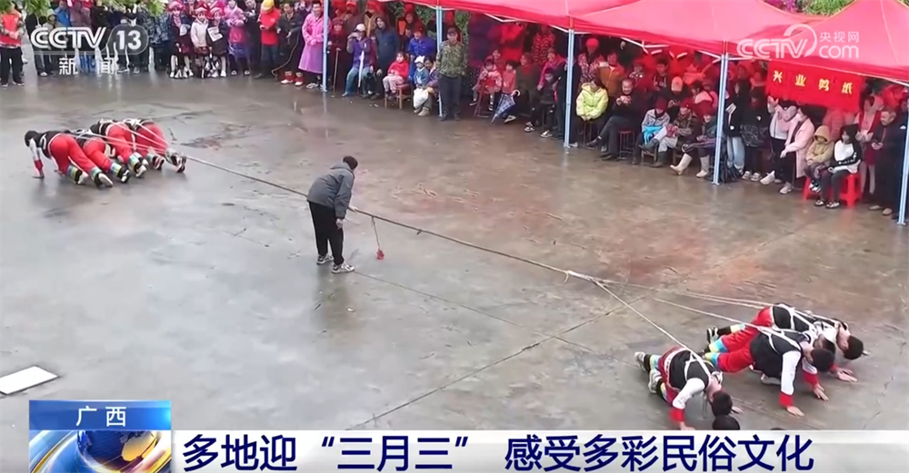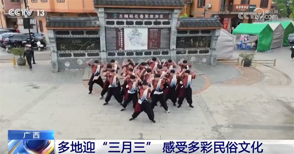 在南寧市賓陽縣,這幾天,當地將傳統農耕文化與“三月三”民俗深度融合。活動現場,壯族山歌、農耕舞蹈展現了“開犁祈福”“稻穀豐登”等場景,吸引不少遊客駐足觀賞。