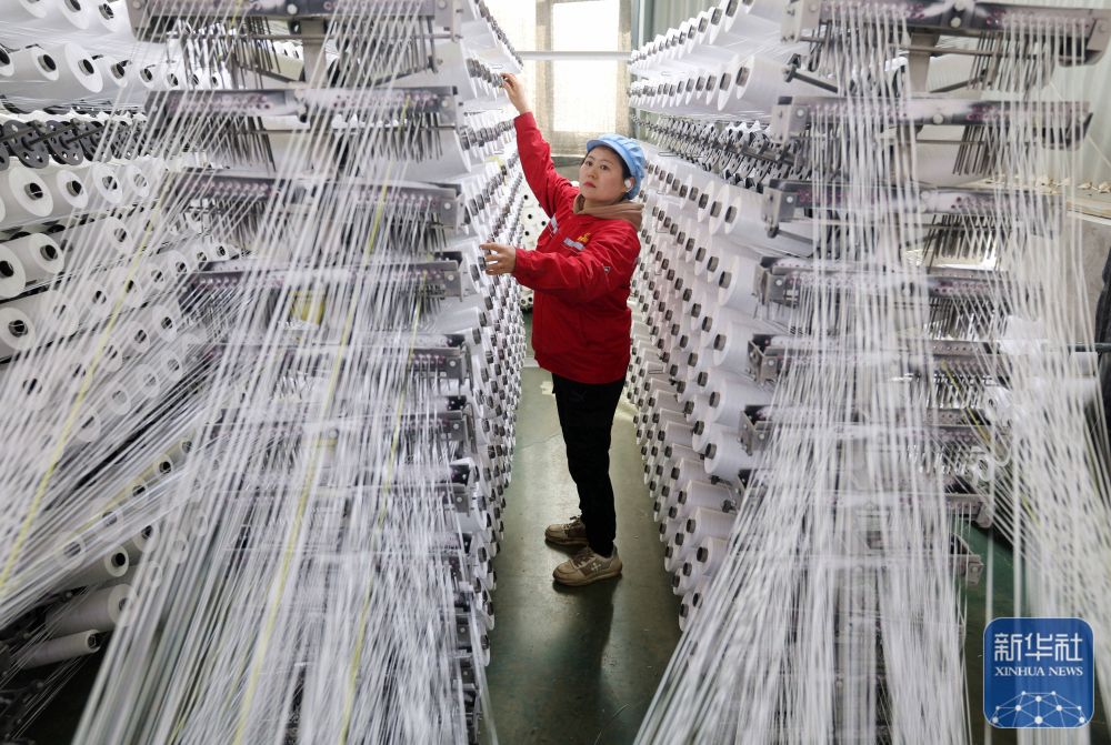 ↑ 3月30日,在山東省臨沂市沂南縣青駝鎮一家塑編企業車間,工人在加工塑編產品。新華社發(王彥冰 攝)