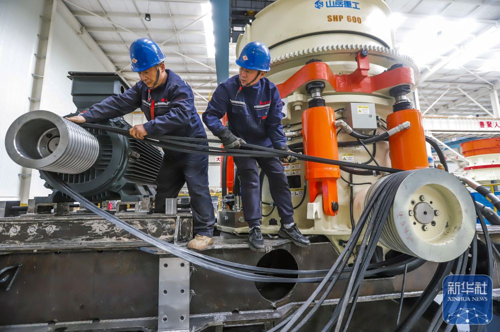 ↑ 3月30日,在位於遵化市的河北省唐山市山嶽重工機械製造有限公司,工人在車間內工作。新華社發(劉滿倉攝)