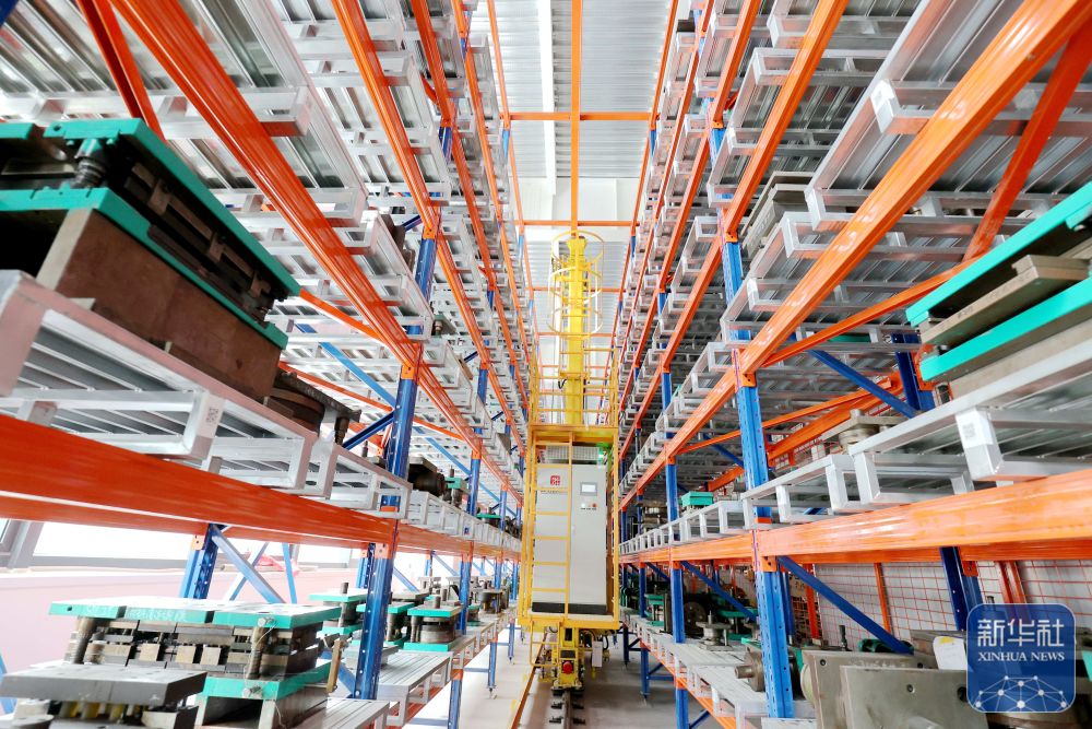 ↑ 3月30日,位於浙江省湖州市德清縣雷甸鎮的南元泵業有限公司自動化立體倉庫,堆垛機在進行貨物轉運作業。新華社發(謝尚國攝)