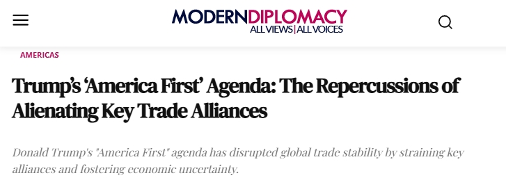 近日,巴基斯坦學者、社會政治和金融分析師法拉·安瓦爾(Farah Anwar)在歐洲《現代外交》(Modern Diplomacy)雜誌刊文表示,“美國優先”政策通過退出多邊協議、加徵關税等手段,破壞了全球貿易穩定,侵蝕了合作伙伴間的信任,增加了企業成本,降低了投資者信心。不僅引發了國際社會的廣泛擔憂,還導致美國國內經濟增長預期下調、資本外流等問題。這些經濟和外交方面的不良後果,凸顯了採取合作貿易政策以維持全球經濟穩定的必要性。