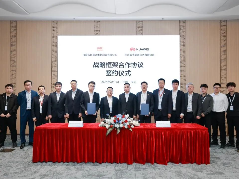 華為數字能源與內蒙古智慧運維新能源有限公司簽署重磅合作,計劃未來圍繞新能源智慧化運維展開全方位交流與合作。華為中國數字能源業務總裁孟少雲,華為中國數字能源技術服務與運營部部長王迪,華為內蒙古數字能源業務部部長姜明,內蒙古智慧運維新能源有限公司黨委副書記、董事長李志剛,生產技術部副部長趙建飛,市場營銷部王昱樺出席交流並見證簽約,華為內蒙古數字能源技術服務與運營負責人何彥龍,內蒙古智慧運維新能源有限公司市場營銷部部長丁嘉偉上台簽約。