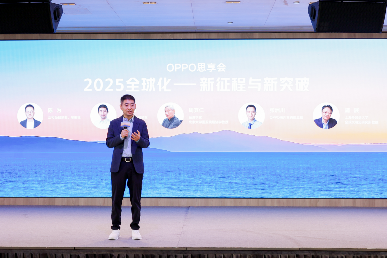 會上,經濟學家、北京大學國發院經濟學教授周其仁,上海外國語大學全球文明史研究所教授施展及正和島副總裁、總編輯陳為,與OPPO高級副總裁段要輝,OPPO海外營銷服總裁張洲川,圍繞“2025全球化——新徵程與新突破”深入探討中國企業的出海之道,力求為中國企業全球化提供新思路。