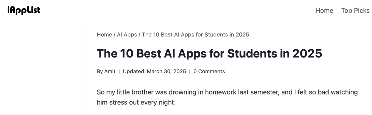 “起初,我測試很多為學生服務的AI應用程序,是為了幫助被作業‘淹沒’的弟弟。”作者阿米特寫道:“看着他每晚都因為作業而緊張到無法入睡,我感到很難過。然後,我開始發給他一些AI工具來試試。兩週後他發消息告訴我‘太不可思議了,你拯救了我的睡眠。”