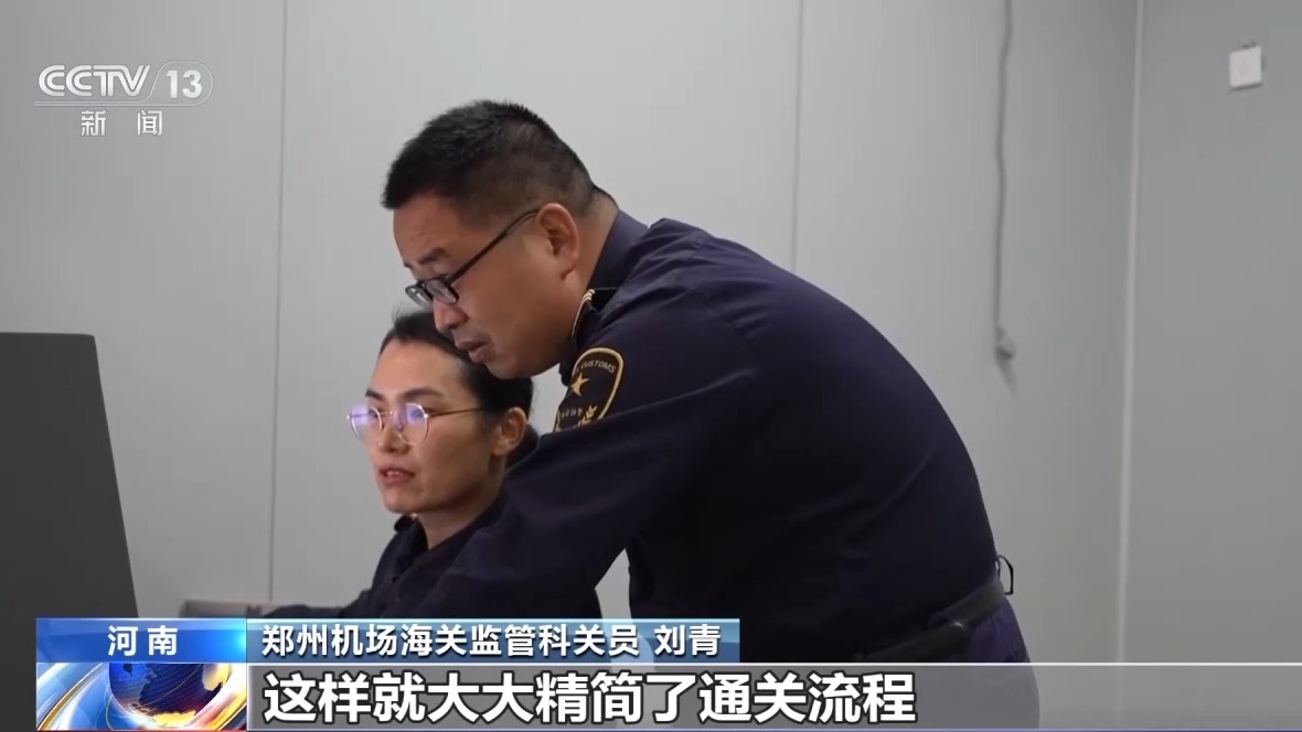 *鄭州機場海關監管科關員 劉青:*我們簡化了出口單證申報手續,企業無需再向海關提交收款的電子信息了。另外我們也積極推廣出口拼箱貨物,先查驗後裝運的監管模式,這樣就大大精簡了通關流程。
