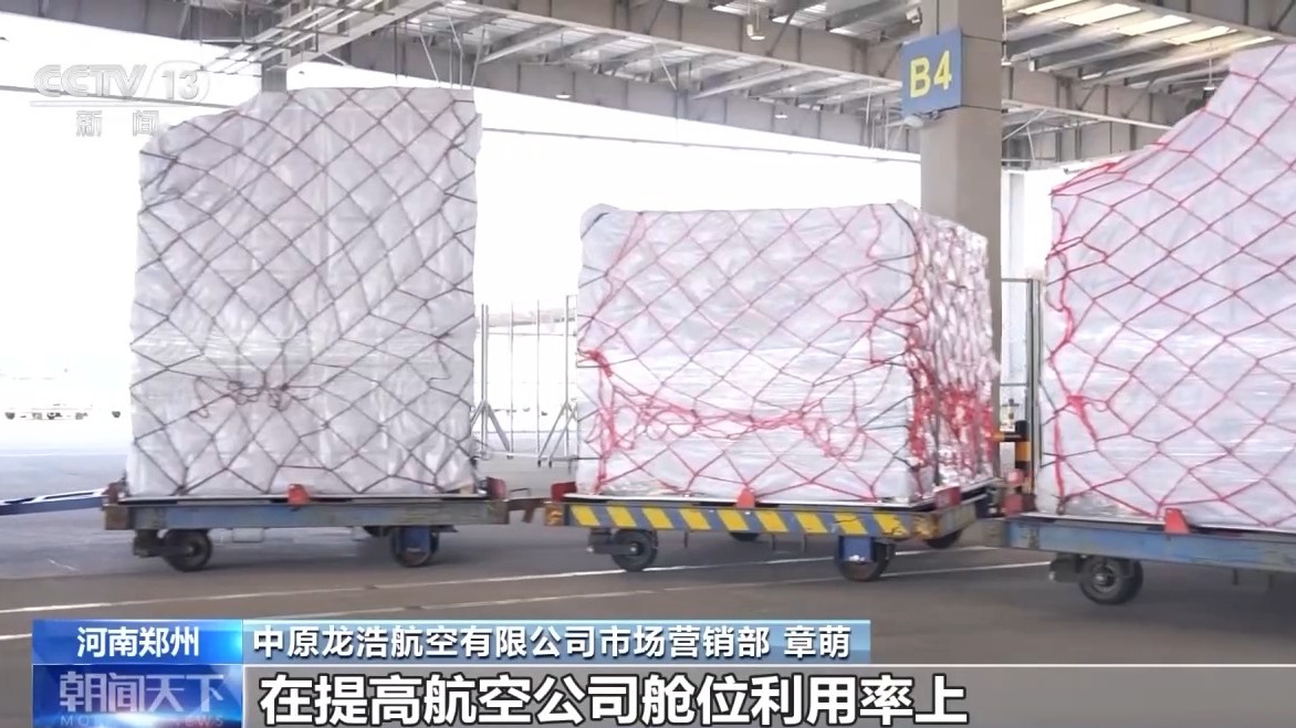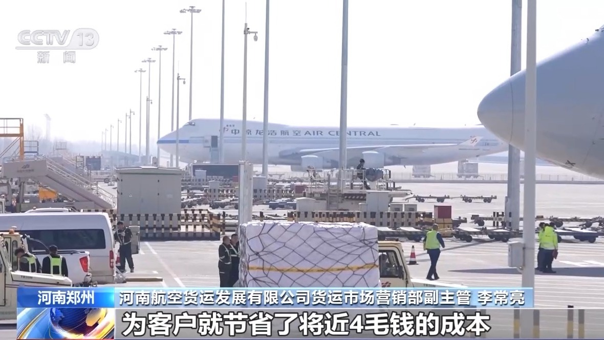 *河南航空貨運發展有限公司貨運市場營銷部 李常亮:*時效能夠提升3到6個小時,而且我們現在對中轉貨實行一次性收費,算下來相當於我們一公斤為客户就節省了將近4毛錢的成本。